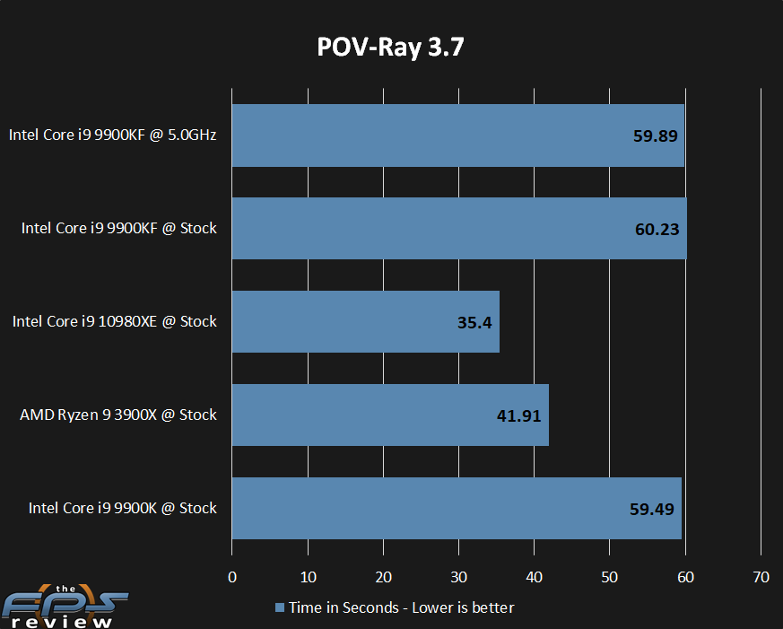 POV-Ray shows almost no improvement from clock speed changes. All three of our Coffee Lake CPU’s perform virtually the same.