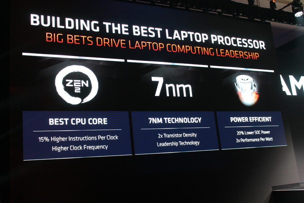 In 2020 AMD will be producing the best laptop processor ever built. AMD is bringing the Zen 2 core to laptops, the same Zen 2 core that is in Ryzen 3000 desktop CPUs. This means 7nm CPUs in laptops finally for the most power-efficient designs with 20% lower SOC power and 2x performance per watt.