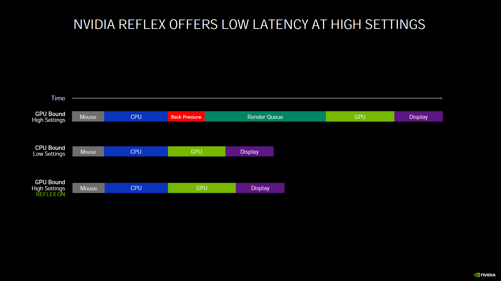 Finally, NVIDIA is also introducing NVIDIA Reflex, a technology to reduce input lag while gaming. If you want to reduce latency games will have an option and you just simply turn it on in the games that support it. One area where this technology is really going to start taking shape and showing the most benefit is on displays with insanely high refresh rates, like the new 360Hz panels coming out. In addition, there will be hardware analyzing support built into GSYNC monitors that lets you measure latency in a new and unique way. With Reflex Latency Analyzer you actually plug your mouse into the monitor and monitor latency in ways never done before. But the actual Reflex Low Latency SDK technology is software and enabled in-game on supported games, and you connect your mouse normally as you would to the computer.
