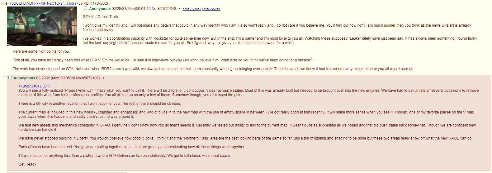 The latest leak reported by Dexerto comes from a 4chan post, and it further clashes with the “Project Americas” leak. The anonymous 4chan user posted on March 29 that “There will be a total of 5 contiguous ‘cities’ across 5 states,” and “There is a 6th city in another location…” “Project Americas” mentions only a few cities: Vice City, an unnamed city based on Rio de Janeiro, and some Liberty City appearances. Both leakers claim to have some connection to Rockstar.