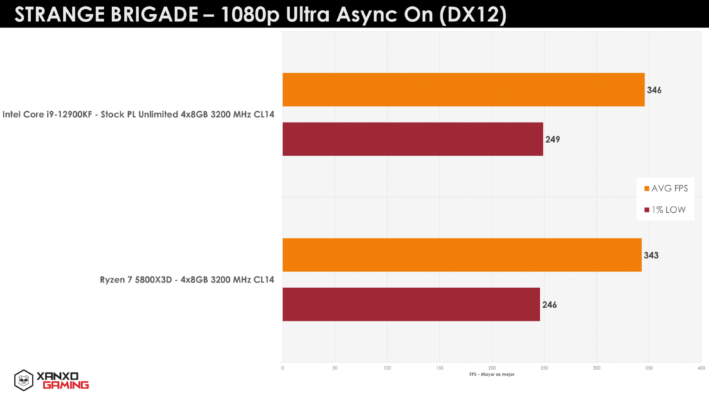 Intel has a small win by 5% in Strange Brigade (DX12 – Async On) which I believe it is Alder Lake-S IPC (which is way better as seen in productivity benchmarks).