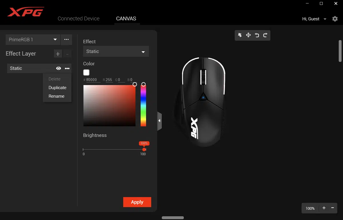 Like many gaming peripheral vendors, XPG has developed a single application to allow for control and customization across their product range. XPG Prime serves this purpose for the brand and supports the XPG ALPHA software programmable gaming mouse.