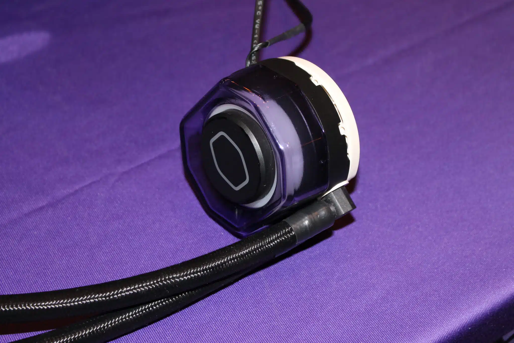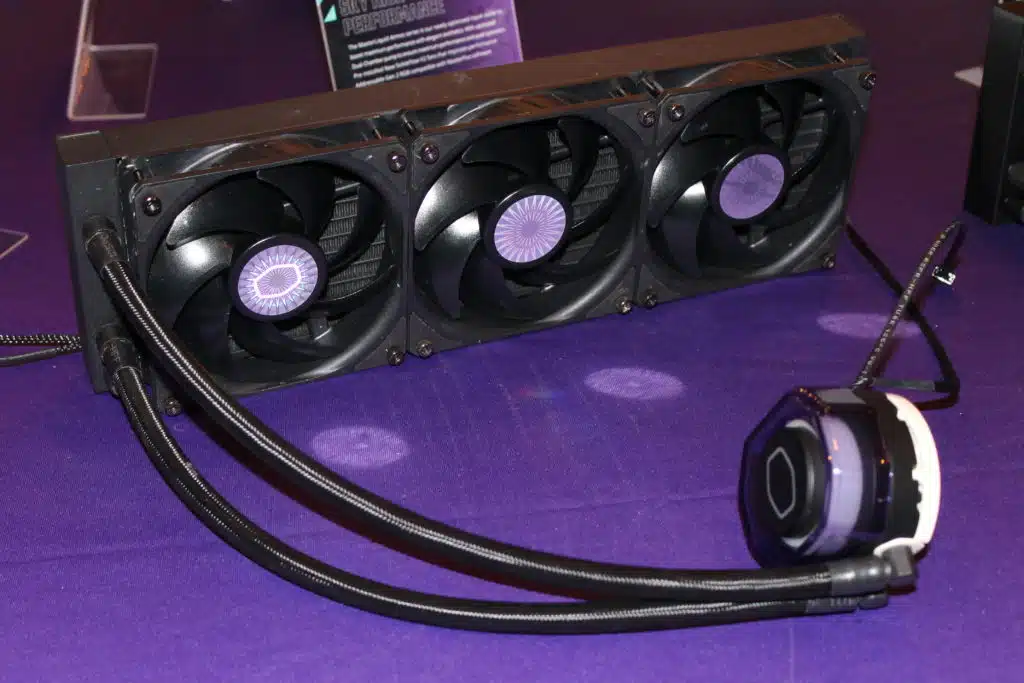 First up, we have the MasterLiquid Atmos which is a new generation AIO that upgrades the Sickleflow fans to the latest and greatest version as well as steps Cooler Master to greater ESG responsibility by utilizing a customizable recycled plastic pump cover. It sports compatibility with LGA 1700/12/115x and AM4/AM5 sockets. Notably Socket 2066 has been dropped from the compatibility list for some cost savings.