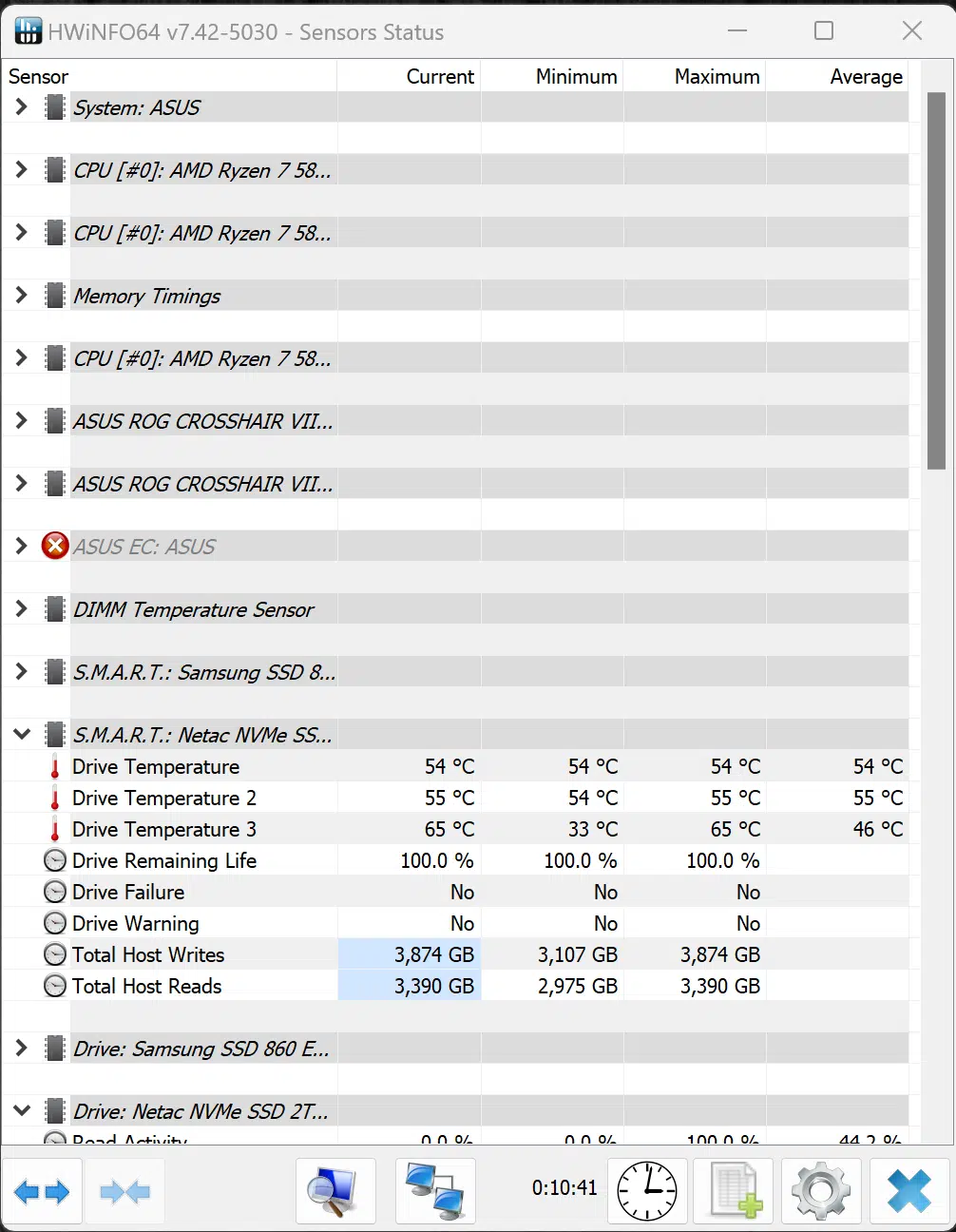 In general use, the temperatures were lower. In a more typical stressing of the SSD in more typical usage of reading and writing randomly for 10 minutes it only reached 65c as you can see in the screenshot of HWiNFO64. This puts it on the lower end of temperatures and is quite acceptable in general usage reading and writing random data for daily use. Only if you are stressing it as hard as possible for more than 20 minutes will you see temps rise to the mid 70’s, and that will not throttle with this heatsink in our testing.