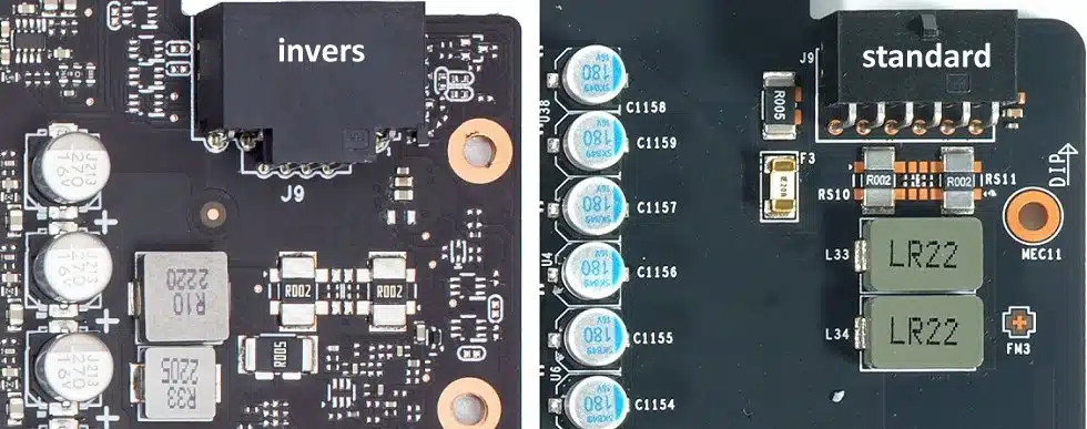 We can see that 58% of the whole boards, i.e. far more than half, have a turned 12VHPWR connector and come from Asus. I have illustrated the difference with two board pictures of mine. Since CableMod also sells native, relatively flexible cables and no damage was recorded there, you have to ask yourself whether the protected story of the allegedly too stupid users is really still so generally tenable. The fact is, as I have proven several times, that any adapter solutions only cause problems when additional lateral forces act on the plugged-in connector (e.g. as a result of cable management).