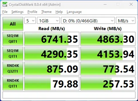The other two Gen4 slots both performed around 6,530 MB/s read and actually had slightly higher write speeds of around 4,900 MB/s. Unsurprisingly the lone Gen3 slot is the slowest at 1,643.87 MB/s read and 1,626.42 MB/s write speeds.