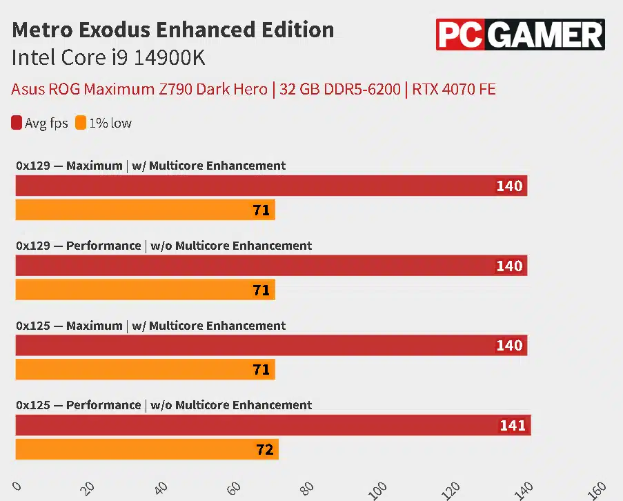 Microcode (0x129), a new update for 13th and 14th Gen Core desktop processors that Intel began rolling out to OEM/ODM partners last week as part of its solution for mitigating instability issues on Raptor Lake, has no notable impact on the performance of some of today’s most popular games, including Cyberpunk 2077, Metro Exodus, and Baldur’s Gate 3, according to new tests that have been shared online. The effect of Microcode 0x129 was tested against Microcode 0x125, an update that Intel delivered in June 2024 to fix the eTVB (Enhanced Thermal Velocity Boost) issue in Core i9 processors.