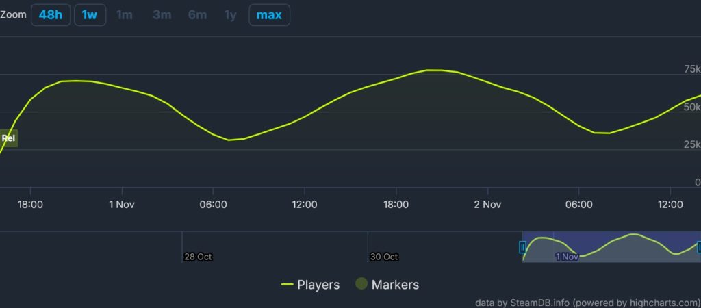 Dragon Age: The Veilguard is off to a good start according to data from Steam where reported player counts have set a new record. The latest franchise installment has managed to surpass all of BioWare’s previous games on Steam by a significant margin with its peak concurrent player count. Dragon Age: The Veilguard launched for PC and consoles on October 31 and within 24 hours it reached a max total of 77,465 players. That total dipped down to around 30,000 but has since been climbing up again, currently climbing towards 63,000.