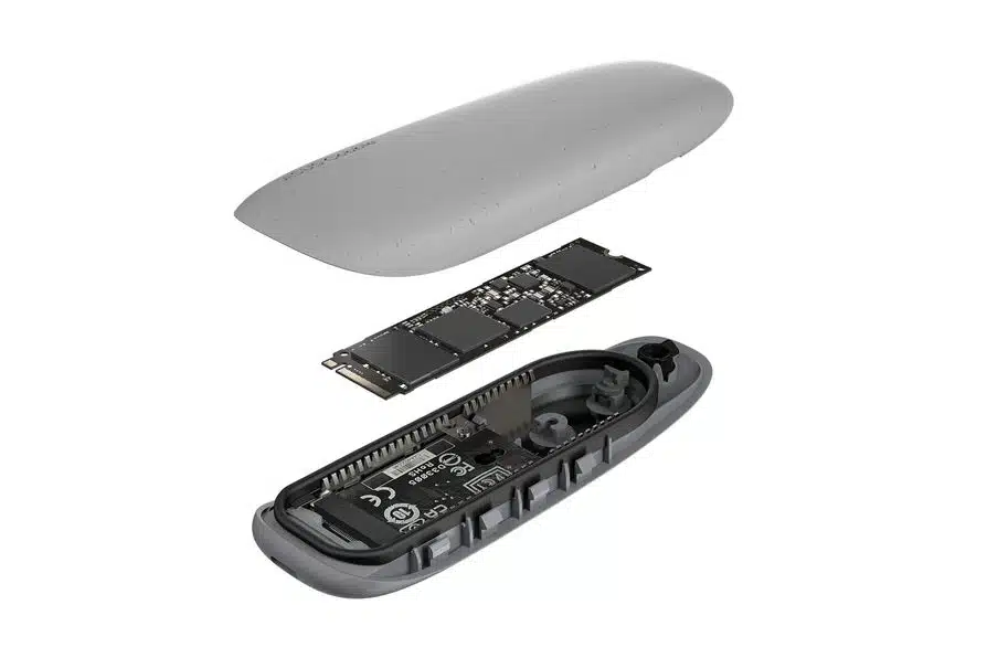 The ASUS Cobble SSD enclosure has a sleek cobblestone-inspired design that’s available in gray or black. Speckle-painting techniques enabled designers to incorporate organic textures and colors into the design, giving the enclosure a warm and natural aesthetic that perfectly complements any workspace or gaming setup. A special scratch-resistant coating offers a durable surface that protects the enclosure from minor impacts, and enables the sturdy metallic chassis to withstand high temperatures for long-lasting stability and reliability.Â