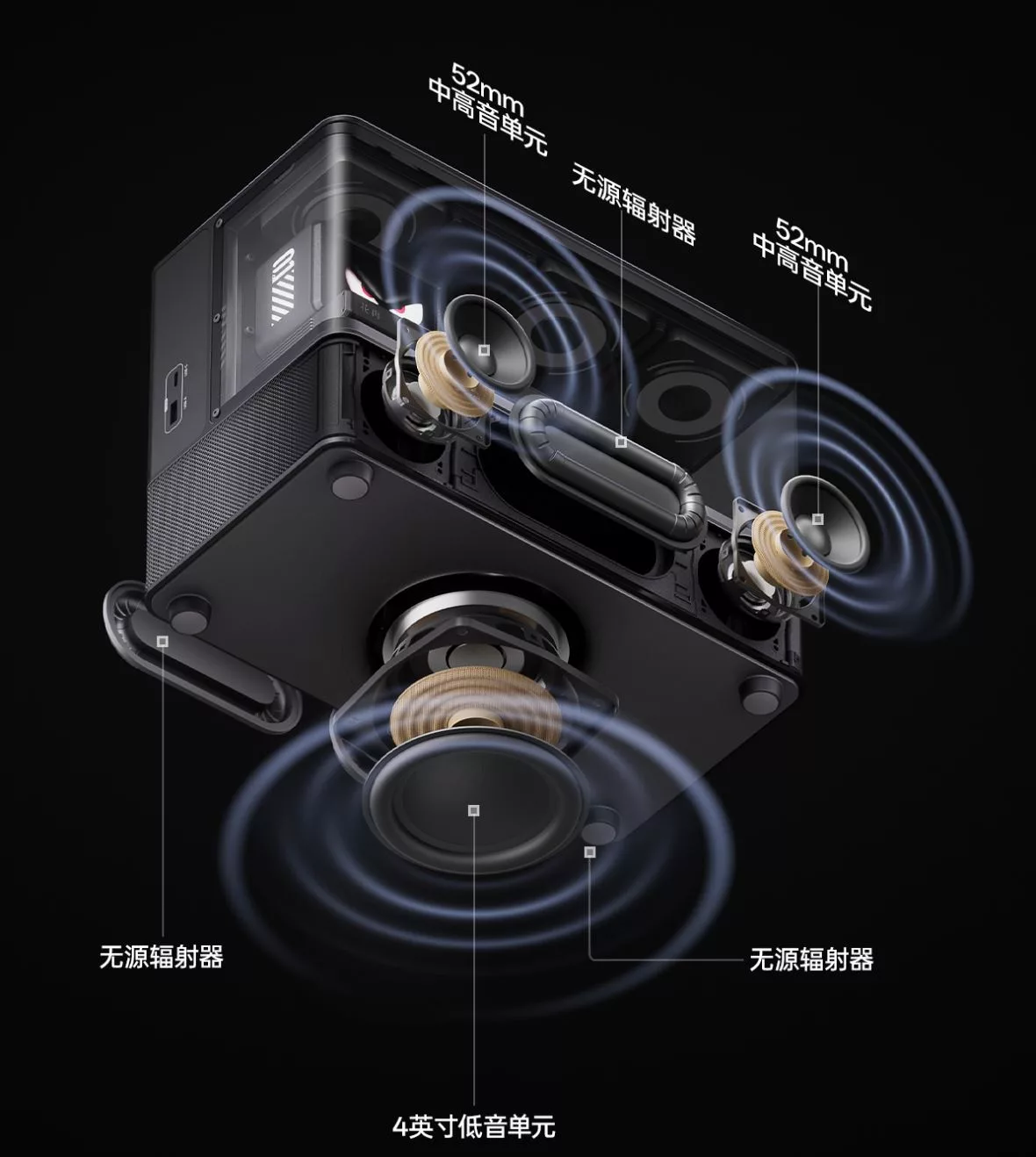 The faux AIO also features RGB fans that change colors and pulse to the music, along with a 2.8-inch LCD screen, which can be configured to display animations, song lyrics, a clock, and once paired to a PC it can also display live CPU, GPU, and memory stats. This 2.1 setup conceals its drivers in the bottom portion of the “PC,” where most builds would typically locate their PSU. At a quick glance, they might not be immediately noticeable, but they can definitely be heard.