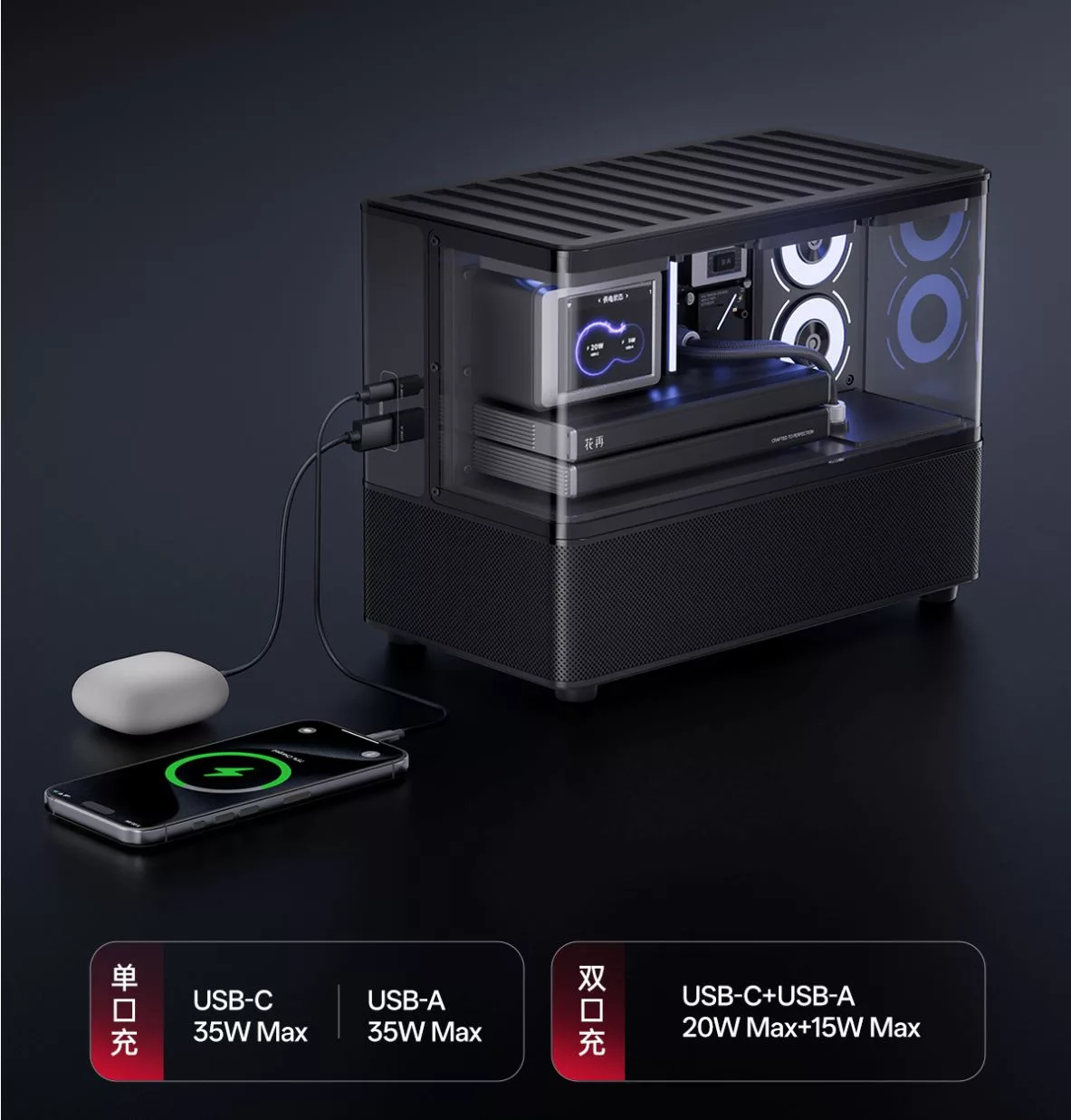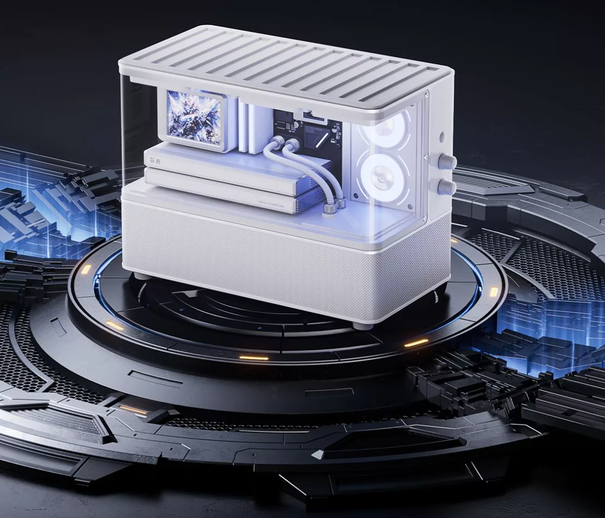 Edifier, a manufacturer of high-quality speakers and headphones, has announced a new Bluetooth speaker that resembles a desktop PC. The Huazai Cyber, available in black or white, has been meticulously designed to resemble a modern desktop PC with featuring a transparent wrap-around cover with simulated cooling fans, two GPUs, and a CPU with an AIO cooling solution. In terms of size, it’s 293.6 x 150.7 x 213.6 mm approaches those of a small form factor build.