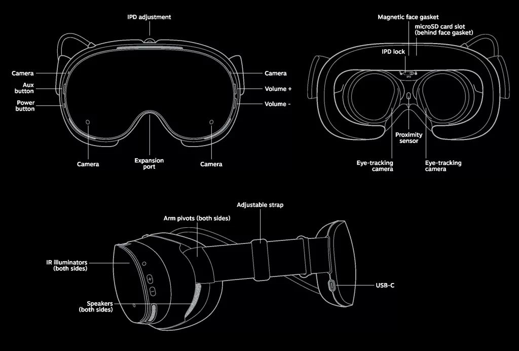- Low-light support: IR illuminators for tracking and passthrough in dark environments