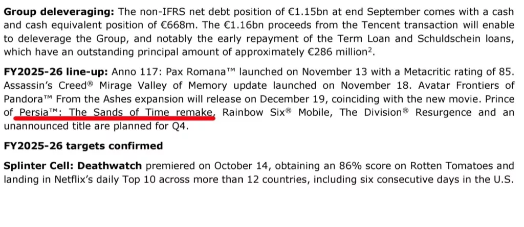 Ubisoft has yet to officially announce an Assassin’s Creed Black Flag remake, but Insider Gaming claims its sources have confirmed the game is in development and that it will be more “RPG heavy”. Meanwhile, another popular title that has been known about for some time seems to still have some life left in it. After roughly five years of rumors and speculated release dates, the Prince of Persia: The Sands of Time remake appears to still be in development. Officially announced in 2020, Ubisoft said the 2003 title was being updated with new puzzles, graphics, combat, and more, but then said in 2021 it had been delayed indefinitely. Meanwhile, those with a sharp eye (via TechPowerUp) have spotted the game listed in Ubisoft’s 2025/2026 release lineup.