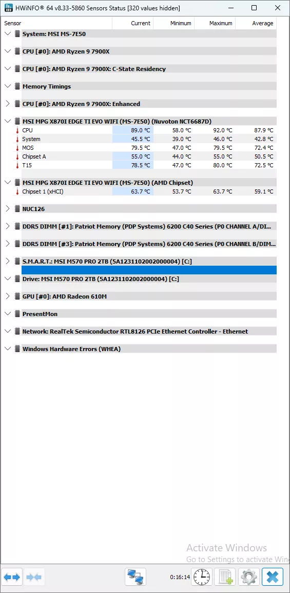 Cooling for the MSI X870I EDGE TI EVO WIFI is excellent for a mini-ITX motherboard, thanks to its active cooling solution that has been implemented. Our handheld thermometer read a high temperature of 48°C, while HWiNFO gave us a maximum MOSFET temperature of 79.5°F, and a chipset temperature of 63.7°C. Surprisingly, outside of the chipset temperature, this is actually worse than the B850I MPG offering from MSI we reviewed in June of last year.