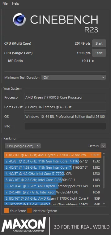 Testing the MSI MAG B850 GAMING PLUS MAX WiFi was accomplished using the benchmarks below. The following components were used: AMD Ryzen 7 7700X, Corsair Vengeance DDR5 32GB at 6000MT/s (CMH32G5M2D6000C36), MSI Spatium M580 Gen5 NVME, and the XFX Swift Radeon RX 9070 XT White Gaming Edition graphics card. Comparison results are discussed from the recent reviews of the MSI B850 GAMING PLUS WiFi PZ, as that board is equally outfitted. Below you will find a gallery of result screenshots from our testing protocol and a brief discussion of the results compared to the other motherboard with the same or similar components.