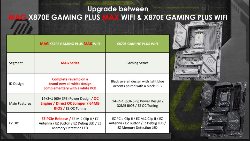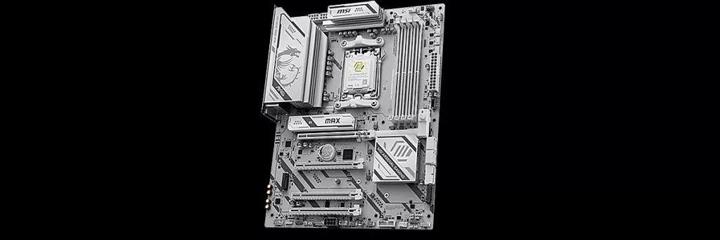 MSI has come to use the “MAX” to indicate that the motherboard is an upgraded version with all the latest additions. The table below details the changes and differences between the two boards. The X870E boards are quite feature-packed and this board is no exception, partly due to the extra X870 chipset found on all X870E boards. If you are a little rusty on AMD AM5 chipsets, here’s a nice table. MSI has placed particular emphasis here on: a new aesthetic, bolstered heatsinks, maximum connectivity, easy installation, AI overclocking and an entry-level price point. We intend to look into the details to see if these claims are on point. MSI has a price tag of $289 on the MSI.store website with a three-year warranty.