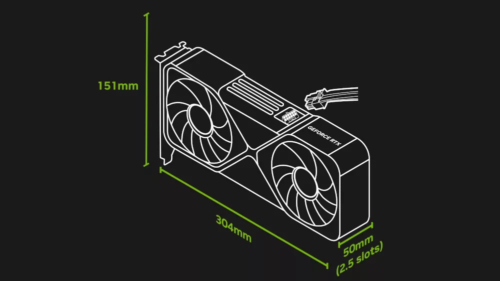 From NVIDIA: “Manufacturer product pages and listings on global retailers have text labeling graphics cards that meet the guideline as “SFF-Ready Enthusiast GeForce Cards”, and cases as being “Compatible with SFF-Ready Enthusiast GeForce Cards”, instantly identifying parts that fit together and allowing you to buy and build with confidence. SFF-Ready Enthusiast GeForce Cards are RTX 70-class or higher from the GeForce RTX 50 and GeForce RTX 40 Series, with the following dimensions: 50mm or 2.5 slots maximum depth, 151mm maximum height including power cable bend radius, and 304mm maximum length.